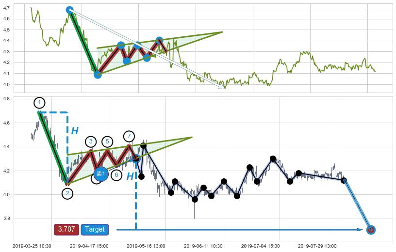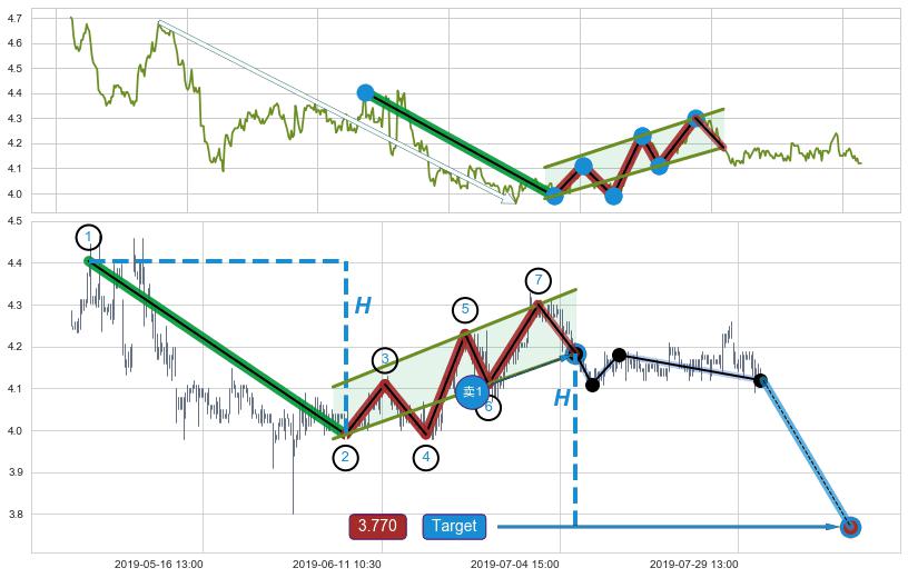 ➣ 最小中继整理跌幅→𝐇: 0.41400 (𝐇旗杆的长度:旗杆起点→顶点)