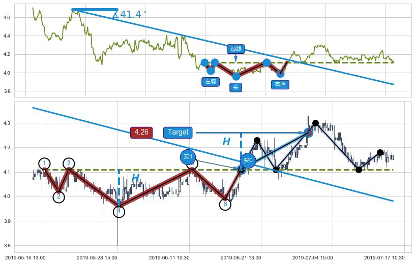 ➣ 最小反转涨幅→𝐇: 0.150000 (头部与颈线垂直距离)