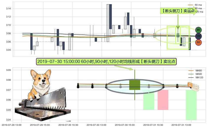 ⚀ 2019-07-30 15:00:00小时显现 60小时-90小时-120小时均线 【断头铡刀】卖出点 看空信号,后市看跌,卖出