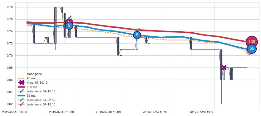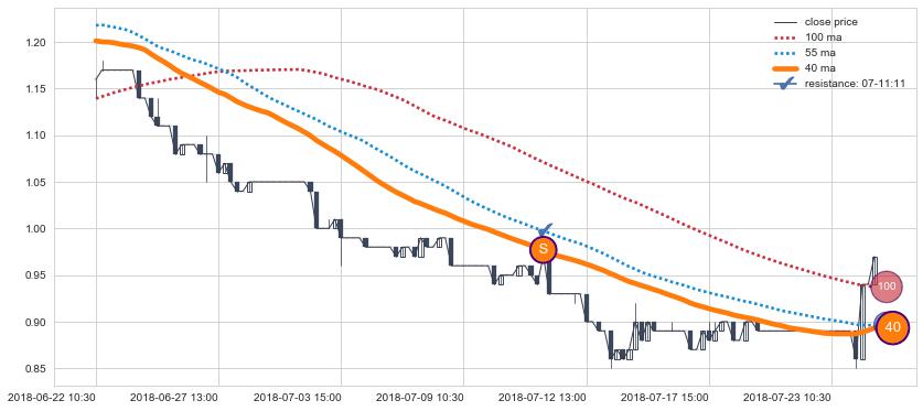 下跌趋势07-10 10:30-07-31 15:00,均线100, 55确认关键阻力2处