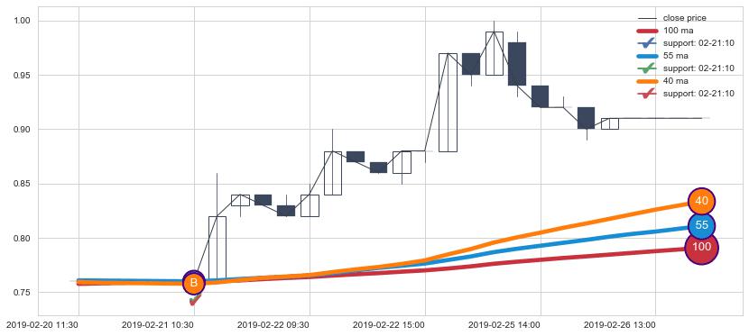 上涨趋势02-20 11:30-02-26 15:00,均线40, 100, 55确认关键支撑1处