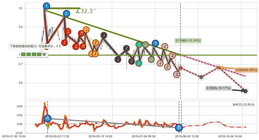 ➢ 预测:2019-10-10 10:00,【继续下探】稳定目前下跌趋势的前提下,预测价格:0.5565