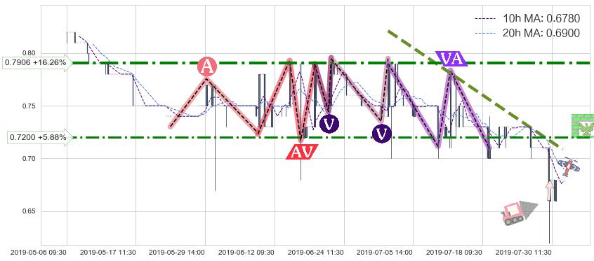 ♘ 阻力价格位0.7906,可信任强度76.07%,距离最后交易2019-07-31 15:00形成的收盘价格0.6800相差 +16.26%