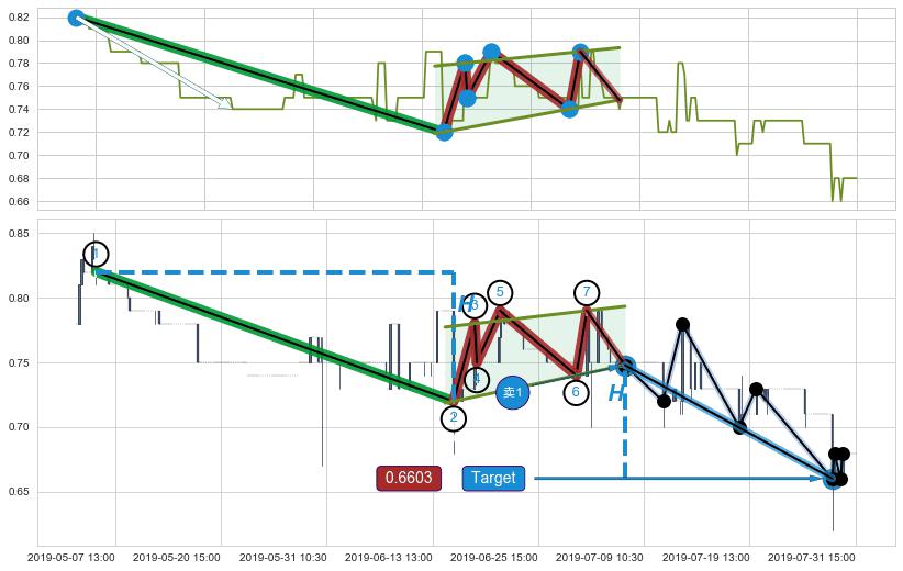 ➢ 【已达成】最小【整理】第一目标价格→(07-30:09: 0.6603 ), 后续继续【整理】下跌动力依然存在,下跌空间适中