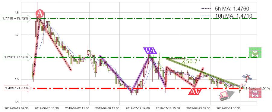 ♘ 阻力价格位1.7718,可信任强度58.65%,距离最后交易2019-07-31 15:00形成的收盘价格1.4800相差 +19.72%