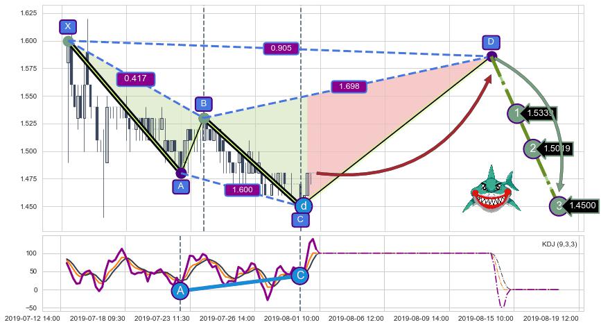 ➣ D点拟合预测价格1.5858,距离最后交易收盘价格1.4800相差 +7.15%