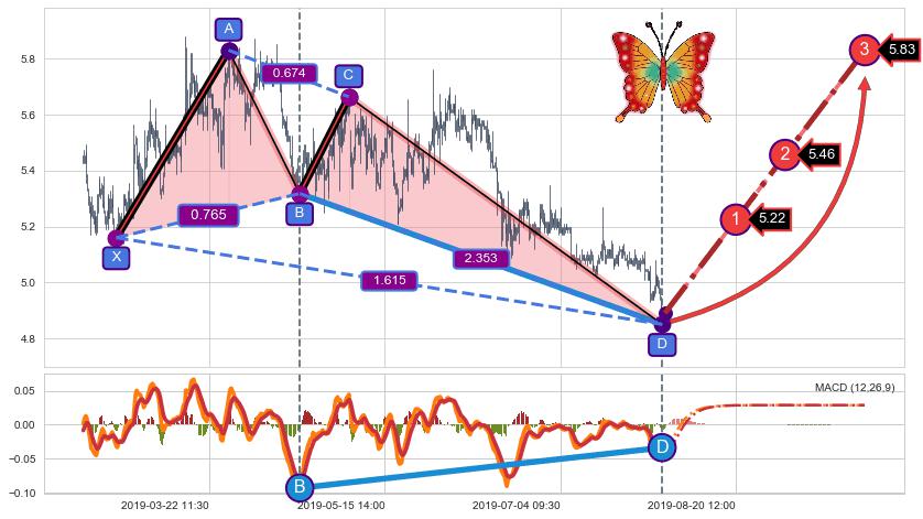 ➣ 已完成【蝴蝶】形态起点X: 02-26:14, 终点D: 07-31:11, 共623交易小时