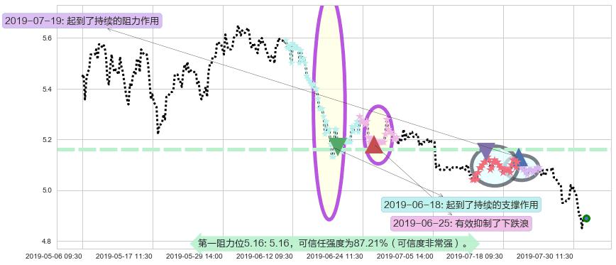 ♘ 阻力价格位5.16,可信任强度87.21%,距离最后交易2019-07-31 15:00形成的收盘价格4.89相差 +5.56%