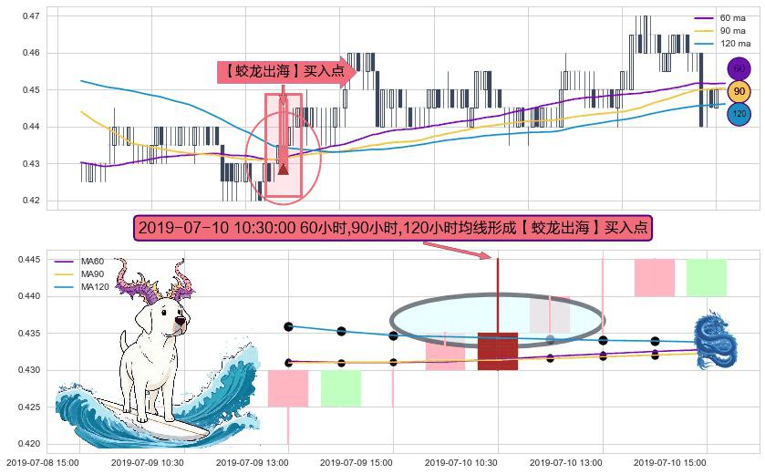 ⚀ 2019-07-10 10:30:00小时显现 60小时-90小时-120小时均线 【蛟龙出海】买入点 看多信号,后市看涨,买入