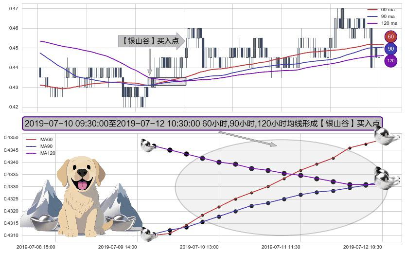 ⚀ 2019-07-10 10:30:00-小时至2019-07-12 10:30:00-小时显现 60小时-90小时-120小时均线 【银山谷】买入点 看多信号,后市看涨,买入