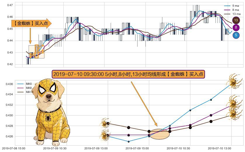 ⚀ 2019-07-10 09:30:00小时显现 5小时-8小时-13小时均线 【金蜘蛛】买入点 看多信号,后市看涨,买入