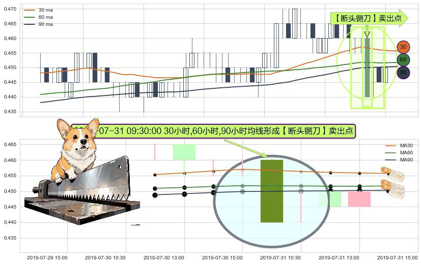 ⚀ 2019-07-31 09:30:00小时显现 30小时-60小时-90小时均线 【断头铡刀】卖出点 看空信号,后市看跌,卖出
