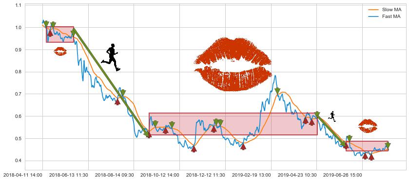 04-17 10:30至05-24 09:30 慢线与快线多次接触,存在上下穿越,有缠绕