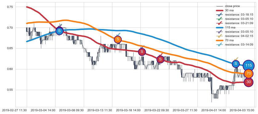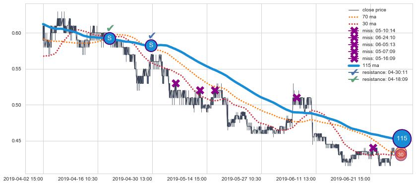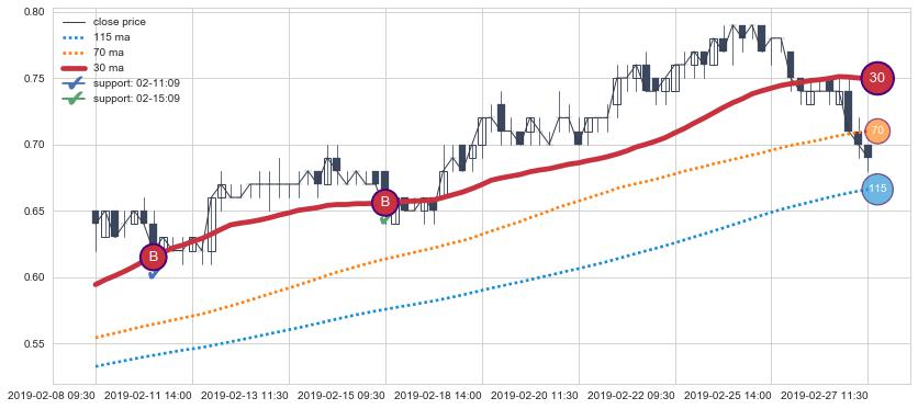 ⚁ MA30和MA60走势平行,且始终保持在短距离内,MA90始终在短中期均线上方,与短中期均线保持一定的距离,微微下行