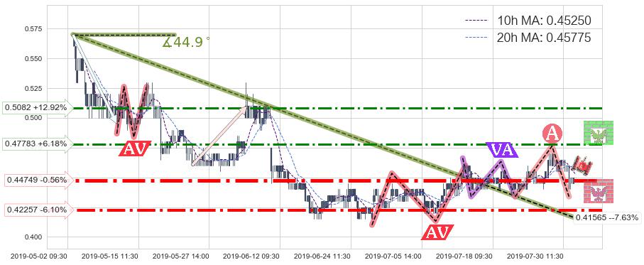 ♘ 阻力价格位0.47783,可信任强度66.89%,距离最后交易2019-07-31 15:00形成的收盘价格0.45000相差 +6.18%