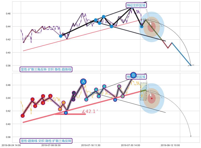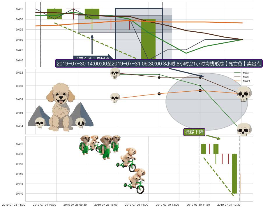 ➢ 最后的上涨趋势2019-06-25 10:30至2019-07-30 15:00:存在破位迹象,后续小调整或者反转下跌