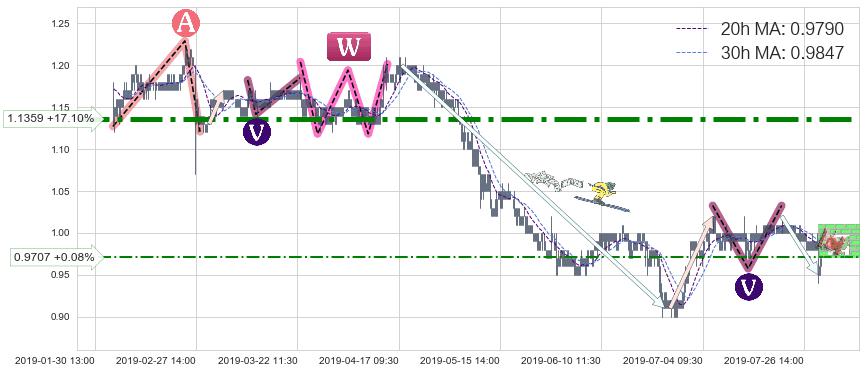 ♘ 阻力价格位1.1359,可信任强度95.58%,距离最后交易2019-07-31 15:00形成的收盘价格0.9700相差 +17.10%