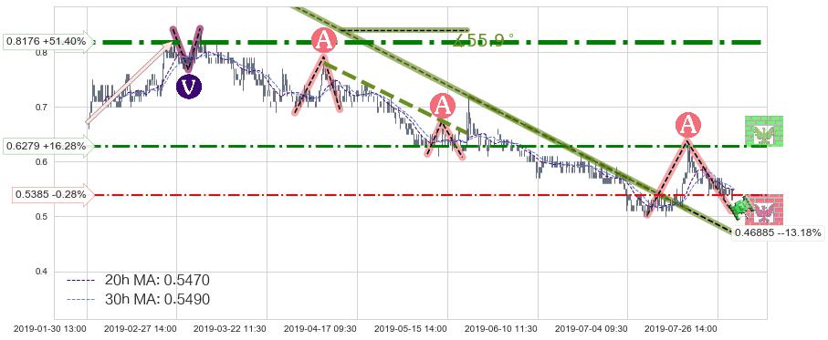 ♘ 阻力价格位0.6279,可信任强度67.48%,距离最后交易2019-07-31 15:00形成的收盘价格0.5400相差 +16.28%