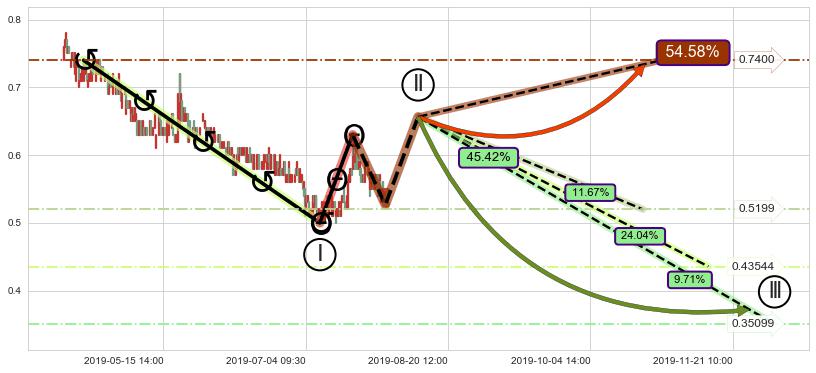 ➣ 高概率大级别循环下跌浪被破坏,反转向上(突破5浪起点)概率54.58%
