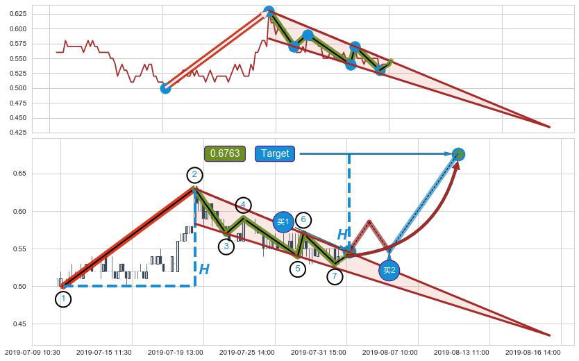 ➢ 最小中继整理涨幅→𝐇: 0.130000 (𝐇楔型旗杆的长度:楔型起点→顶点)