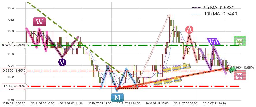 ♘ 支撑价格位0.5309,可信任强度56.38%,距离最后交易2019-07-31 15:00形成的收盘价格0.5400相差 -1.69%