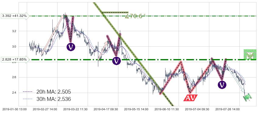 ♘ 阻力价格位2.828,可信任强度83.66%,距离最后交易2019-07-31 15:00形成的收盘价格2.400相差 +17.85%