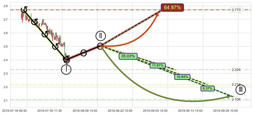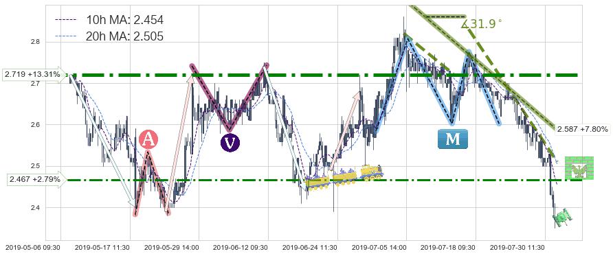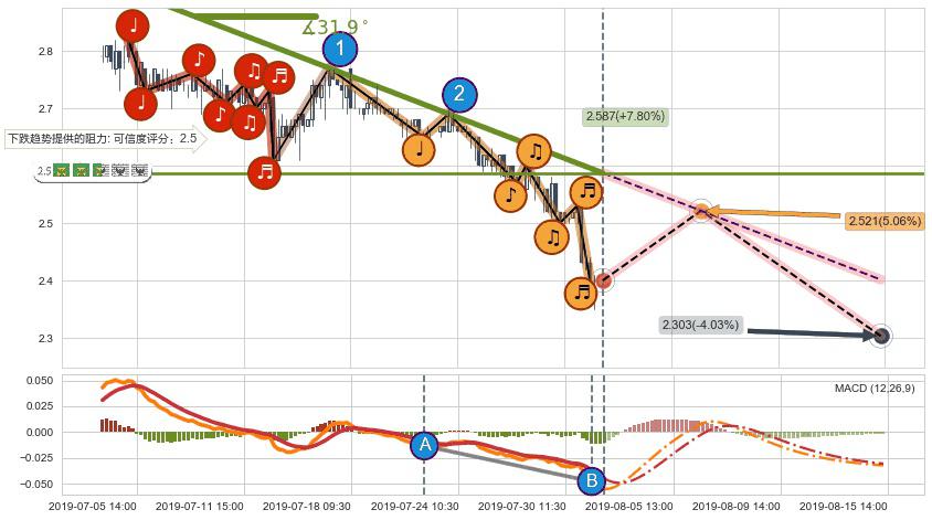 ➣ 预测:2019-08-15 14:00,【继续下探】稳定目前下跌趋势的前提下,预测价格:2.303