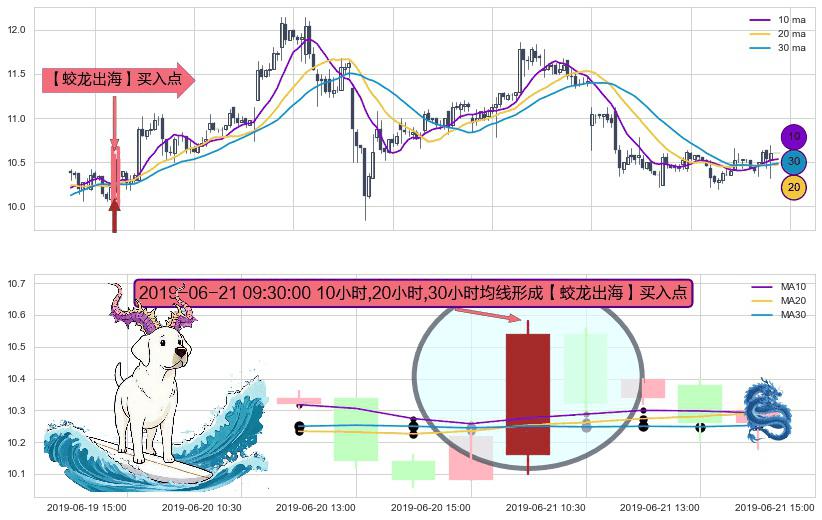 ⚀ 2019-06-21 09:30:00小时显现 10小时-20小时-30小时均线 【蛟龙出海】买入点 看多信号,后市看涨,买入