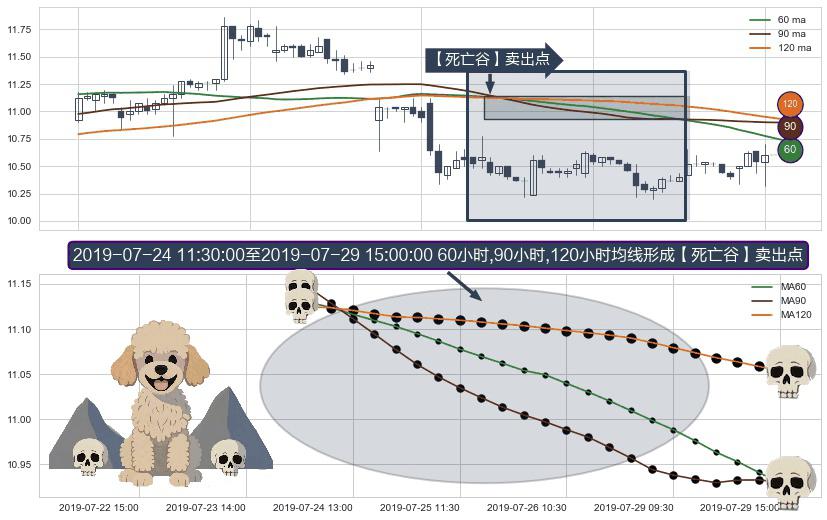 ⚀ 2019-07-24 13:00:00-小时至2019-07-29 15:00:00-小时显现 60小时-90小时-120小时均线 【死亡谷】卖出点 看空信号,后市看跌,卖出