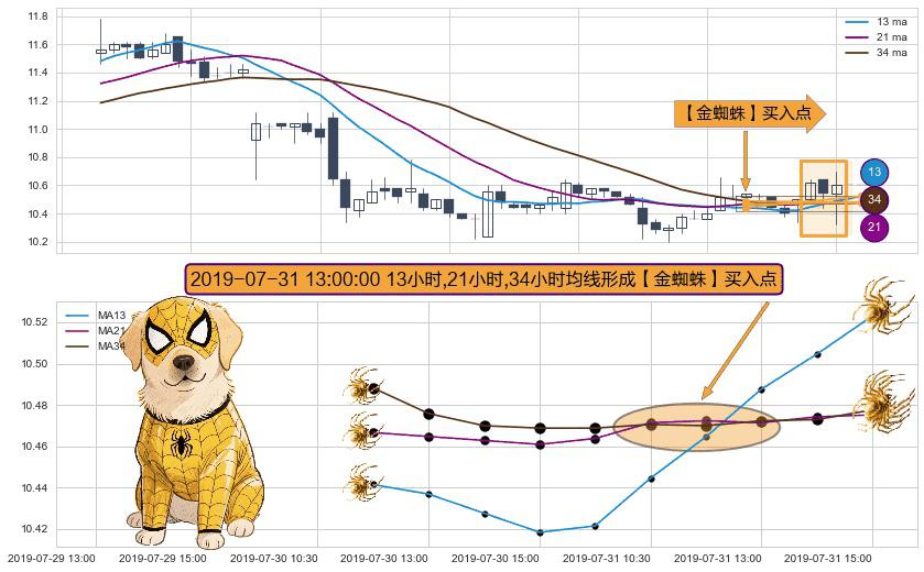 ⚀ 2019-07-31 13:00:00小时显现 13小时-21小时-34小时均线 【金蜘蛛】买入点 看多信号,后市看涨,买入