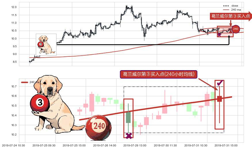 ⚀ 2019-07-31 13:00:00-小时显现 葛兰威尔均线 240小时均线 第③买入点 上升趋势的中继信号,后市看涨,买进信号