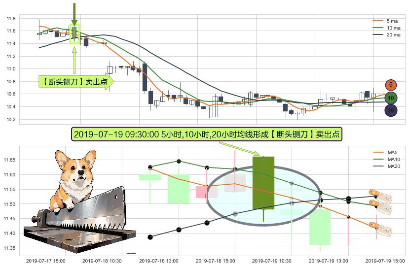 ⚀ 2019-07-19 09:30:00小时显现 5小时-10小时-20小时均线 【断头铡刀】卖出点 看空信号,后市看跌,卖出