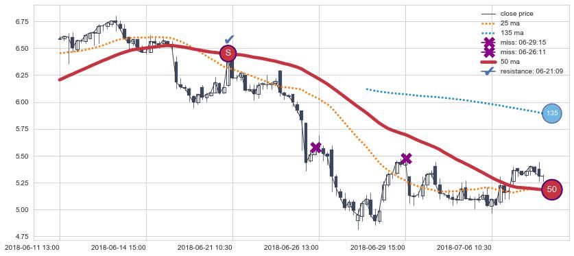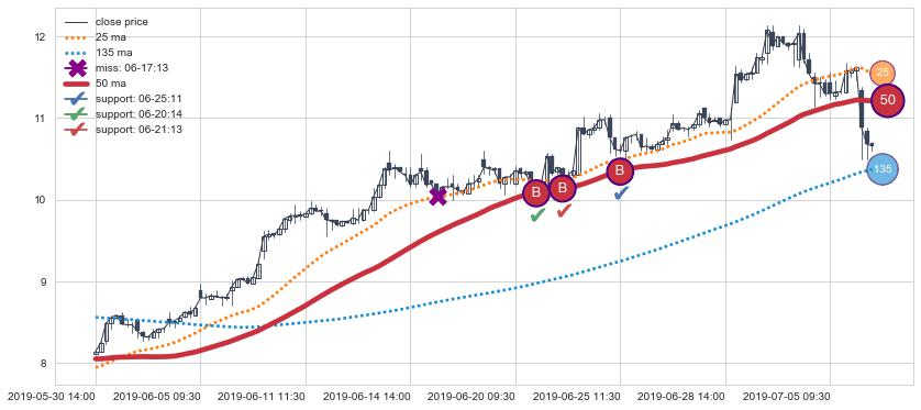 ⚃ 在破位点附近ma走势明显平稳迹象,稍后的走势中ma下垂迹象也出现,信号【可信度中等偏上】