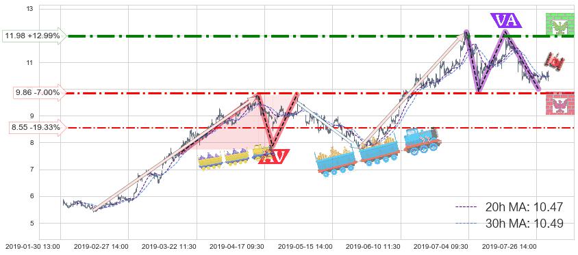 ♘ 阻力价格位11.98,可信任强度73.92%,距离最后交易2019-07-31 15:00形成的收盘价格10.60相差 +12.99%