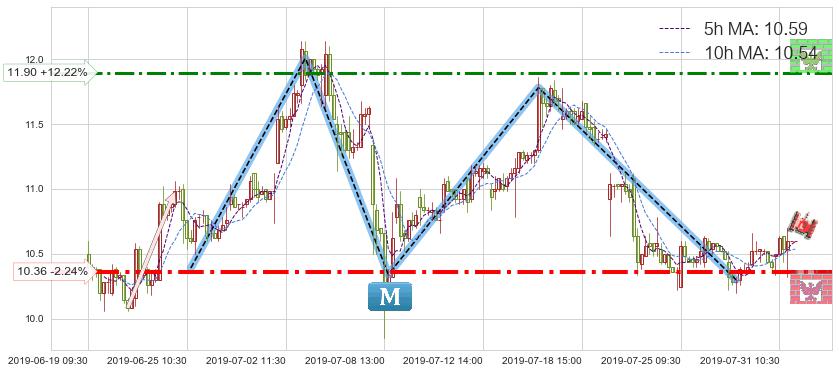 ♘ 支撑价格位10.36,可信任强度71.12%,距离最后交易2019-07-31 15:00形成的收盘价格10.60相差 -2.24%