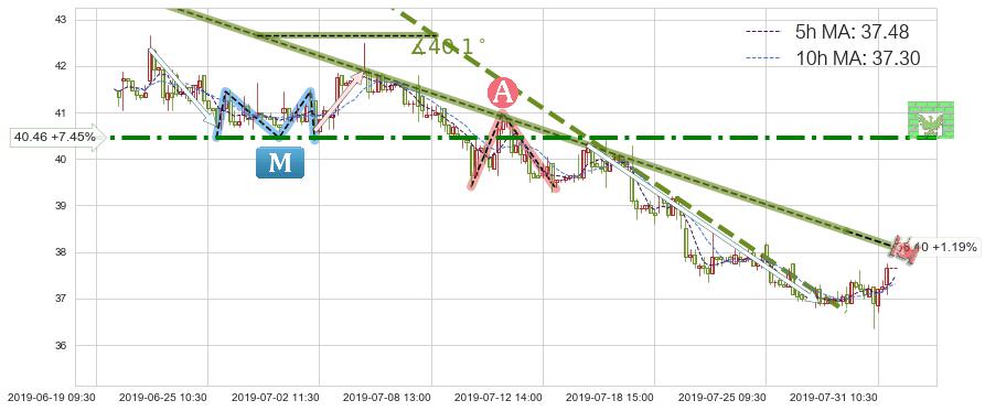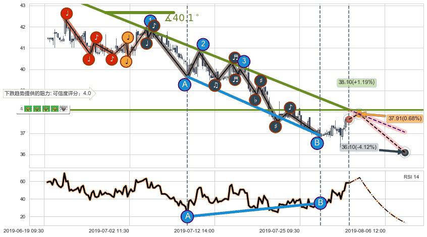 ➢ 预测:2019-08-01 15:00,【小幅反弹】稳定目前下跌趋势的前提下,预测价格:37.91