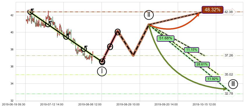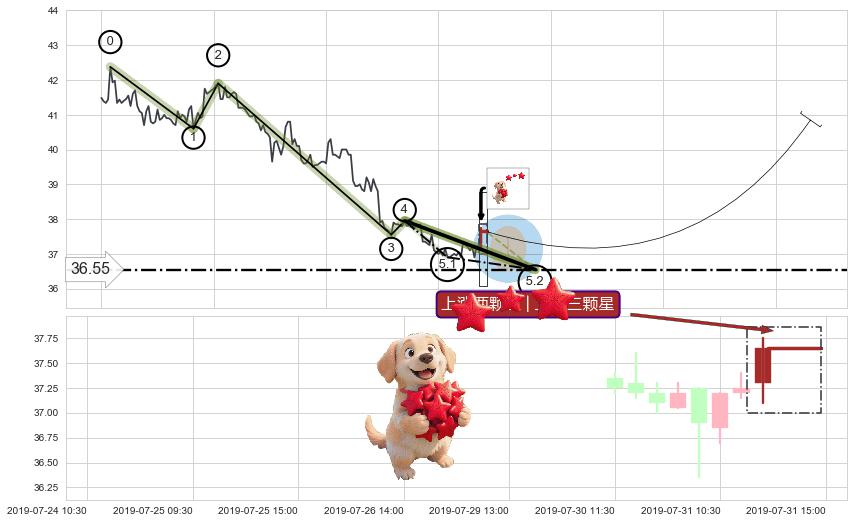 ➢ 5.1: 预测当前第5浪位置(07-29:09, 36.90),仍然有下跌空间