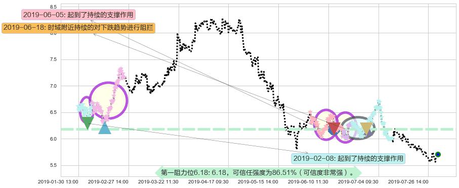 ♘ 阻力价格位6.18,可信任强度86.51%,距离最后交易2019-07-31 15:00形成的收盘价格5.71相差 +8.24%