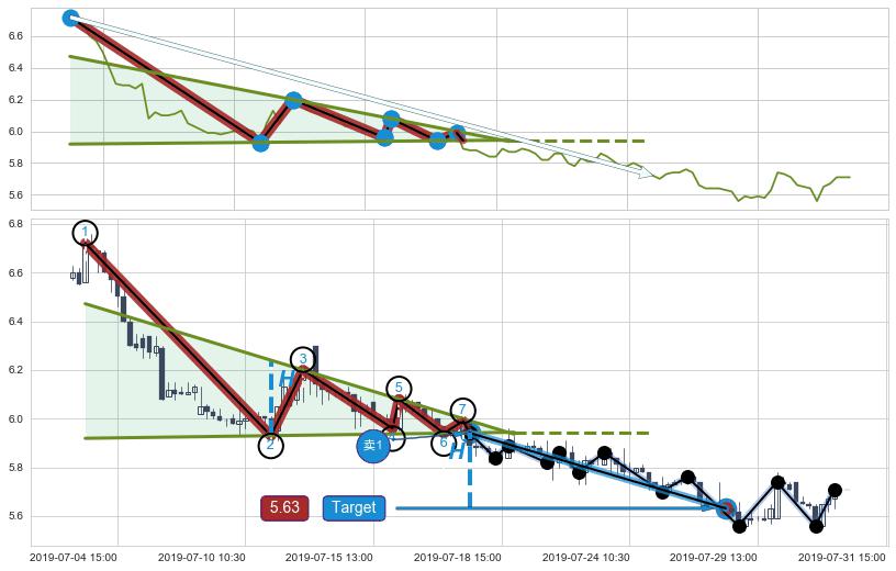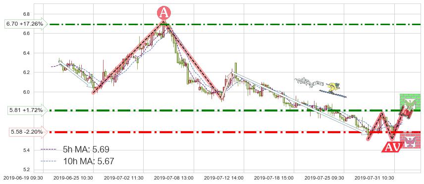 ♘ 阻力价格位5.81,可信任强度84.20%,距离最后交易2019-07-31 15:00形成的收盘价格5.71相差 +1.72%