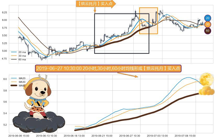 ⚀ 2019-06-17 11:30:00小时-2019-07-09 15:00:00小时显现 20小时-30小时-60小时均线 【烘云托月】买入点 看多信号,后市看涨,买入
