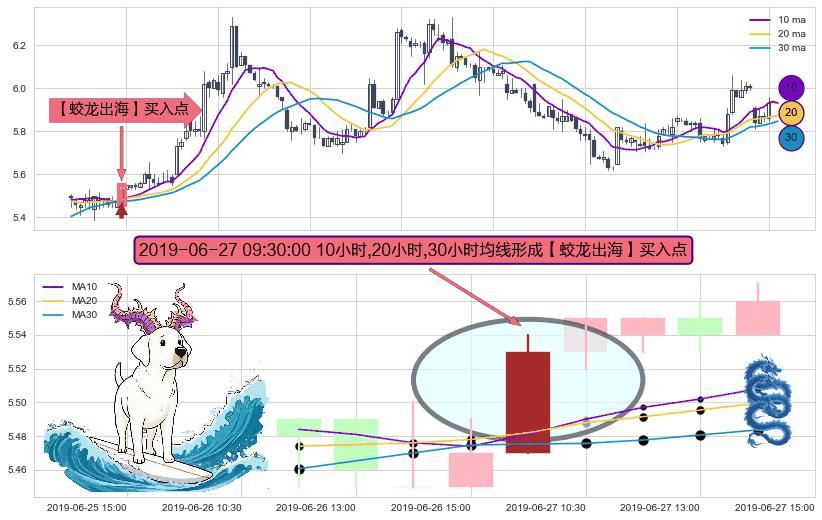⚀ 2019-06-27 09:30:00小时显现 10小时-20小时-30小时均线 【蛟龙出海】买入点 看多信号,后市看涨,买入