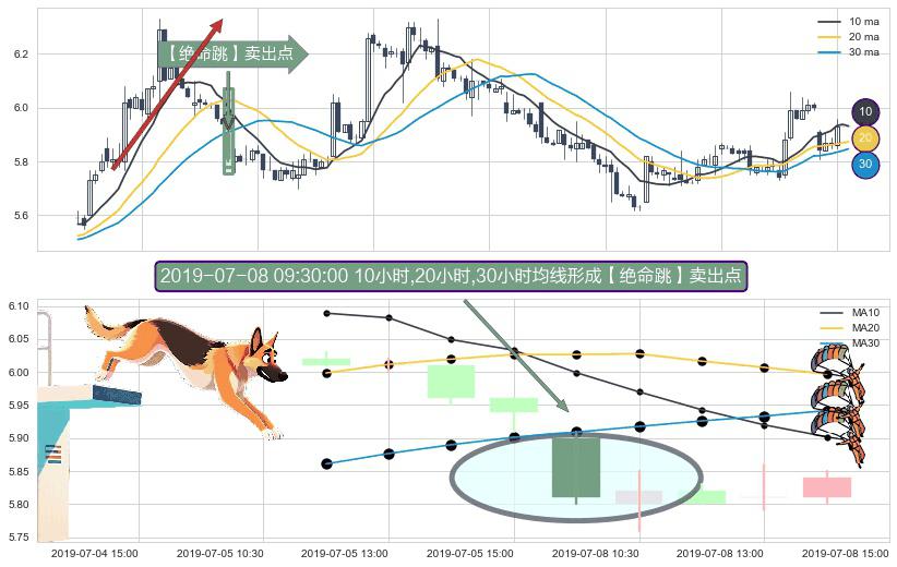 ⚀ 2019-07-08 09:30:00小时显现 10小时-20小时-30小时均线 【绝命跳】卖出点 看空信号,后市看跌,卖出