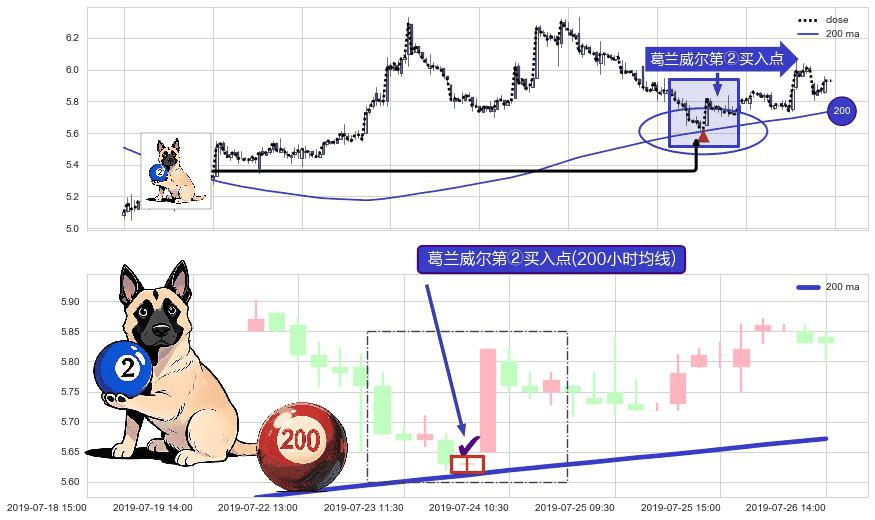 ⚀ 2019-07-23 15:00:00-小时显现 葛兰威尔均线 200小时均线 第②买入点 上升趋势的中继信号,后市看涨,买进信号