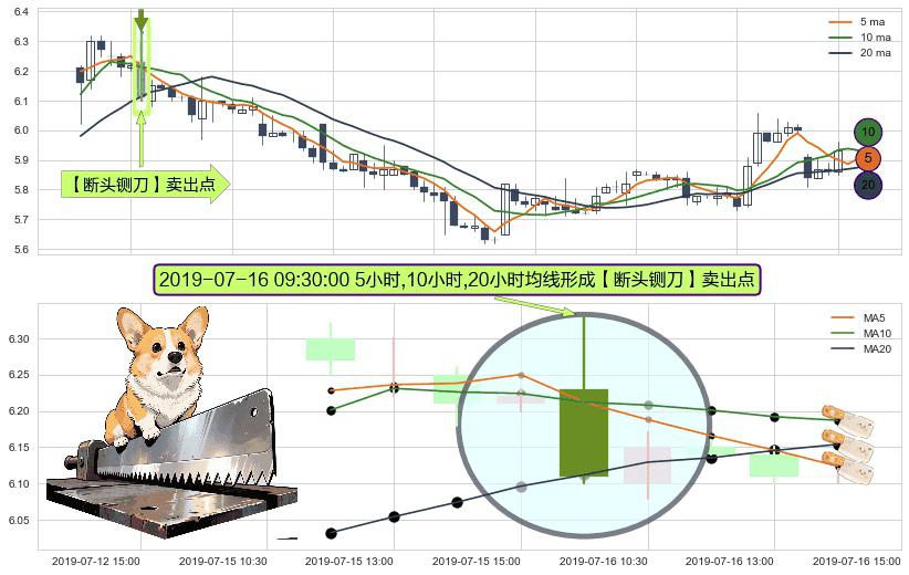 ⚀ 2019-07-16 09:30:00小时显现 5小时-10小时-20小时均线 【断头铡刀】卖出点 看空信号,后市看跌,卖出
