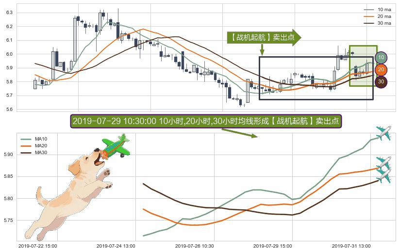 ⚀ 2019-07-24 14:00:00小时-2019-07-31 14:00:00小时显现 10小时-20小时-30小时均线 【战机起航】卖出点 看空信号,后市看跌,卖出