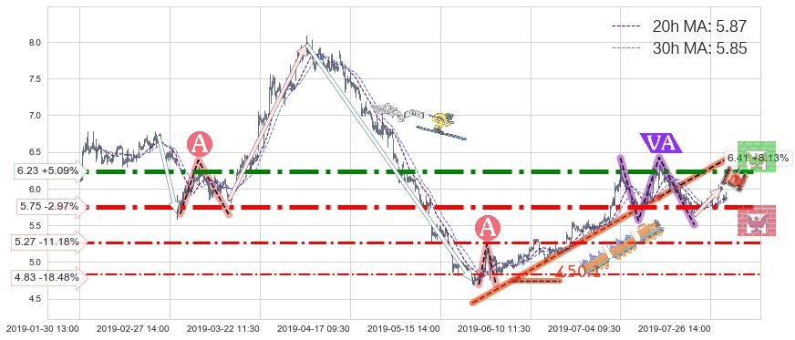 ♘ 支撑价格位4.83,可信任强度54.41%,距离最后交易2019-07-31 15:00形成的收盘价格5.93相差 -18.48%