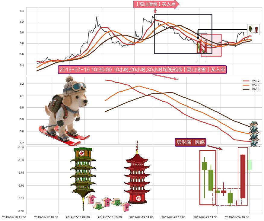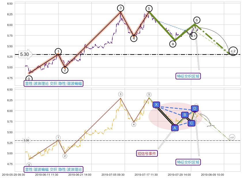 从2019-07-23 14:00至2019-07-31 15:00,共包含38个小时,阶段股价上涨5.37%,阶段股价变动位移路程比: 1 : 3