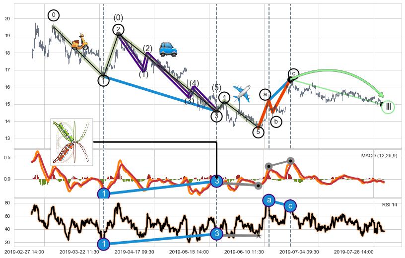 ➣ 第一, 三, 五浪下跌动能逐渐【增强变大】,趋势不断加固