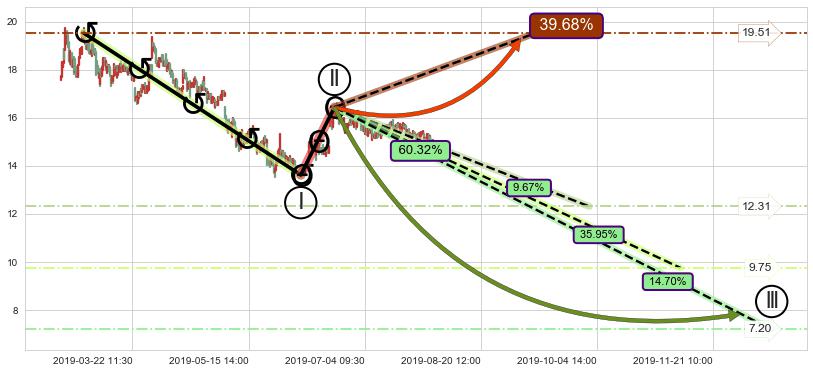 ♘ 支撑价格位13.79,可信任强度73.64%,距离最后交易2019-07-31 15:00形成的收盘价格14.96相差 -7.84%