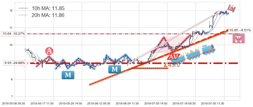 ♘ 支撑价格位10.64,可信任强度43.57%,距离最后交易2019-07-31 15:00形成的收盘价格11.86相差 -10.27%